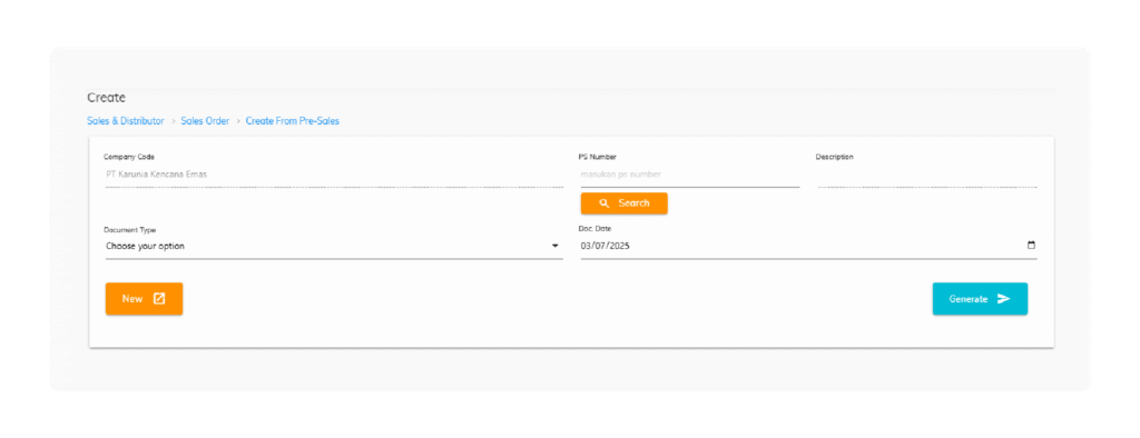 Sales Order dapat dibuat mengacu pada Nomor Pre-Sales Order ketika data pesanan sudah dipastikan dan disepakati dengan customer. Hal ini dapat mempersingkat waktu pada saat proses input data Sales Order saat Customer dan Marketing mencapai kesepakatan. Secara teknis data pada Pre-Sales Order dikonversi menjadi Sales Order